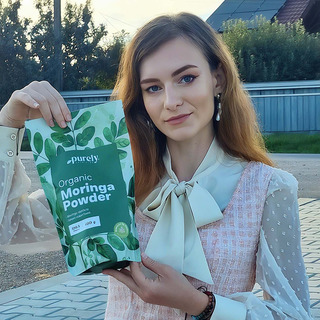 BIO Moringapoeder van het merk Purely Nutrition wordt verkregen uit gedroogde moringa bladeren in overeenstemming met de richtlijnen voor biologische productie. Het is een verrassend product met een licht zure smaak, kenmerkende geur en prachtige groene kleur, en is populair vanwege de hoge gehaltes aan voedingsvezels en eiwitten, die bijdragen aan een verzadigd gevoel en die een gevarieerd dieet ondersteunen.