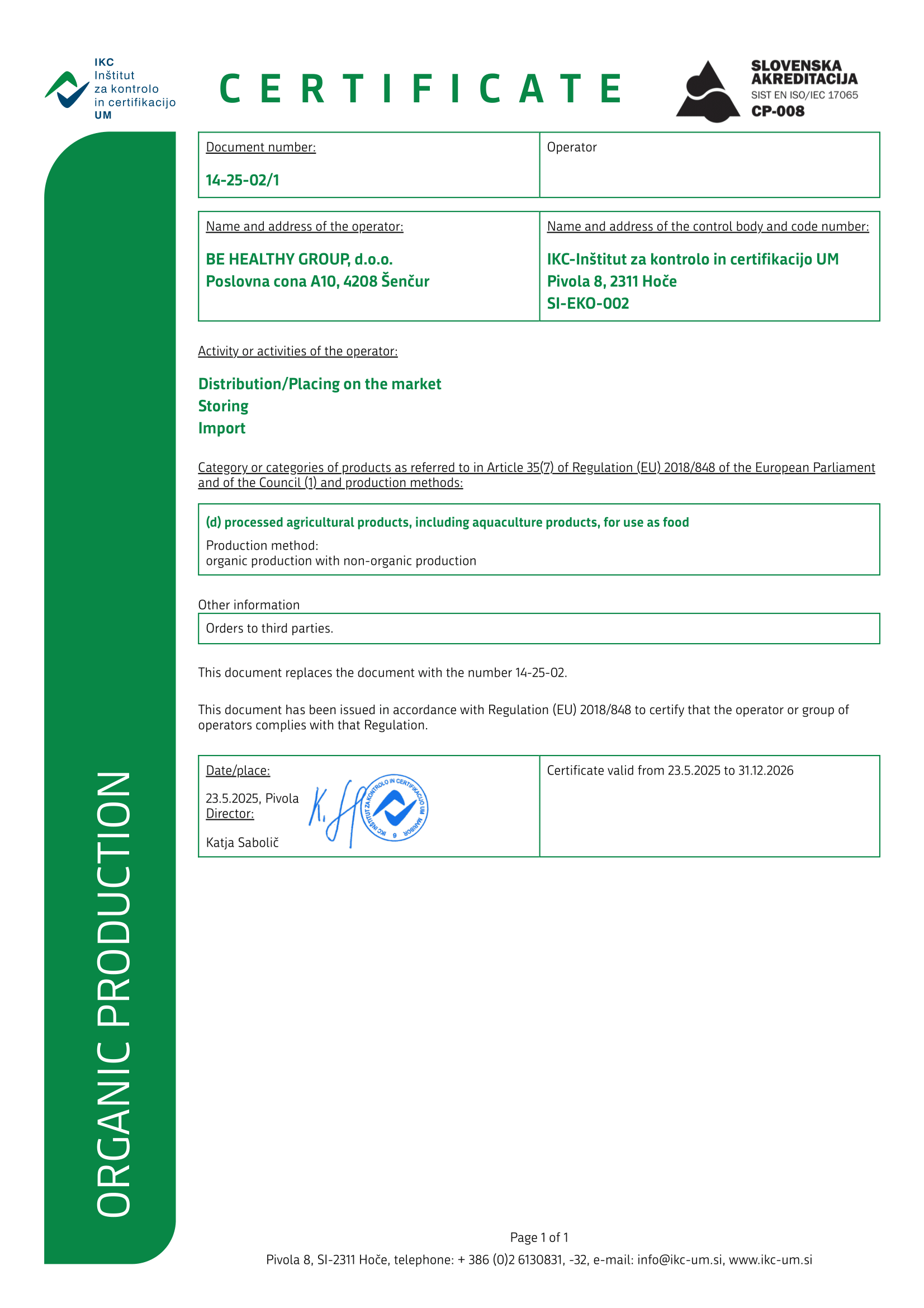 Het certificaat is ook gepubliceerd op de officiële (Sloveense) website van het ministerie van Landbouw, Bosbouw en Voedsel: https://webapl.mkgp.gov.si/